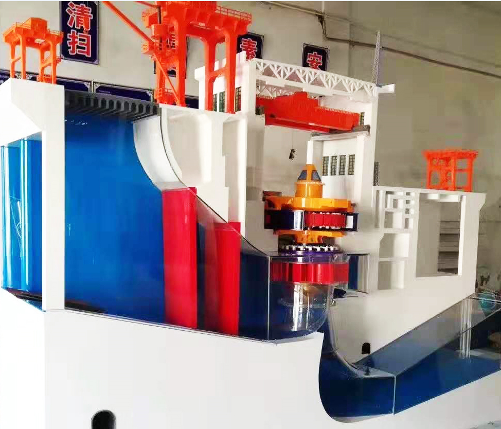 軸流式水輪機模型 軸流式轉輪模型可分為定槳式和轉槳式兩種,它們的主要區別是轉槳式轉輪的葉片隨導葉開度和水頭的變化能自動調整葉片安放角,與導葉保持****的協聯關系。在水輪機運行中,導葉必須按負荷調整開度,而轉輪一邊旋轉一邊調整葉片角度保持與導葉的****協聯關系,即所謂“雙重調節”,使水輪機在較大的出力范圍內均保持較高的效率。定槳式轉輪由于在運行中葉片不能調整,當機組負荷發生變化,導葉開度改變時,葉片安放角不能及時調整,水流對葉片沖角增大,所以在整個出力范圍內水輪機的高效區很窄,但它的結構簡單,在中小型電站中仍較多被采用。